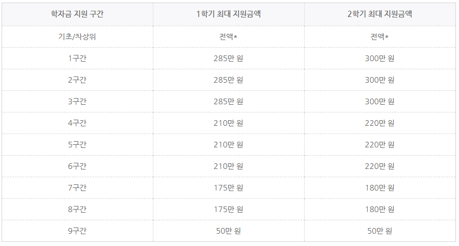 - 지원 대상 확대: 학자금 지원 9구간까지 확대(기존 8구간에서 추가)