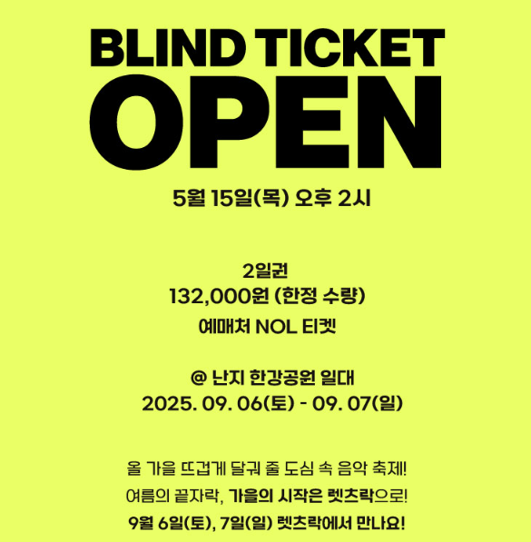 2025 렛츠락 페스티벌 블라인드 티켓, 망설이면 늦습니다.